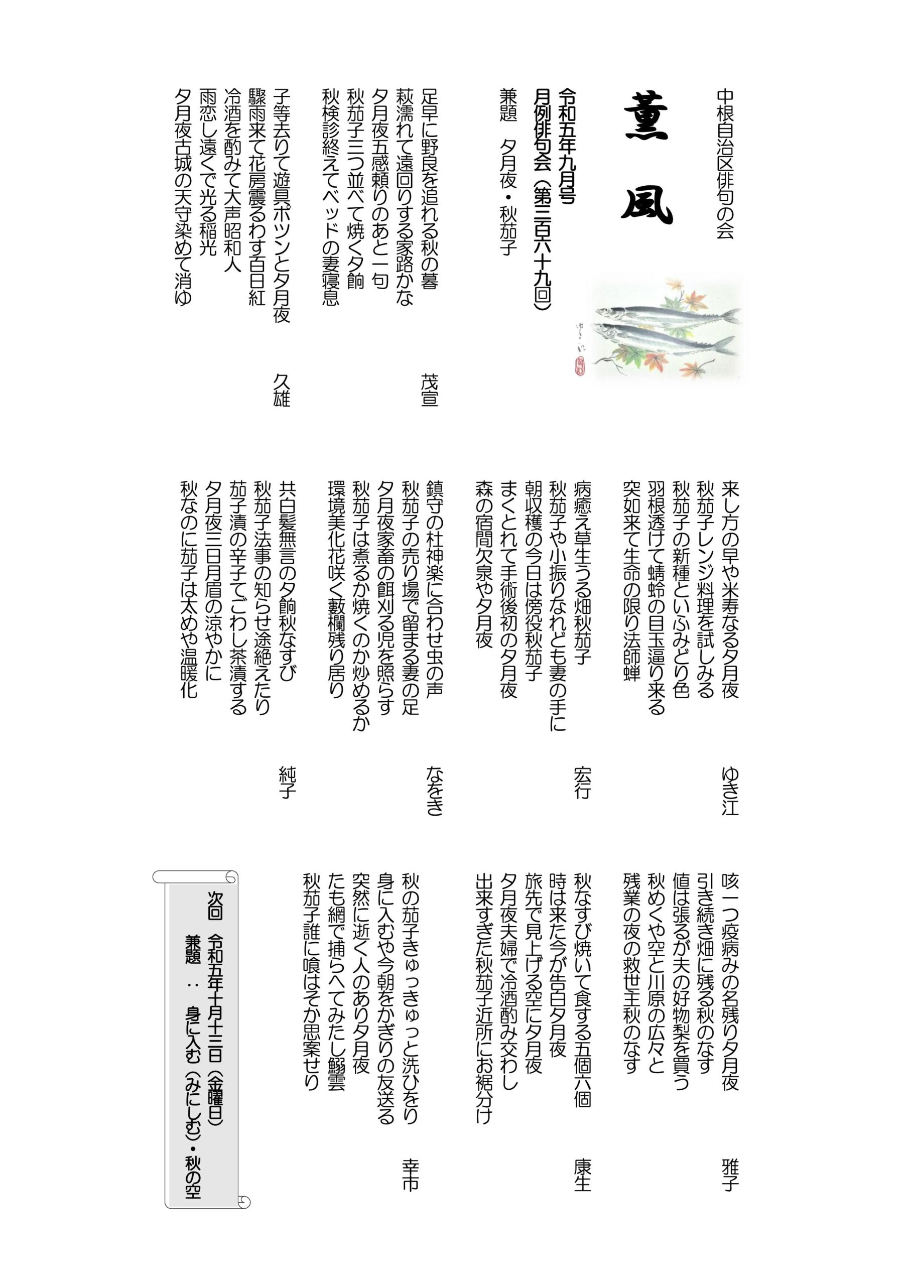 - 薫風 令和5年10月号 月例俳句会370号