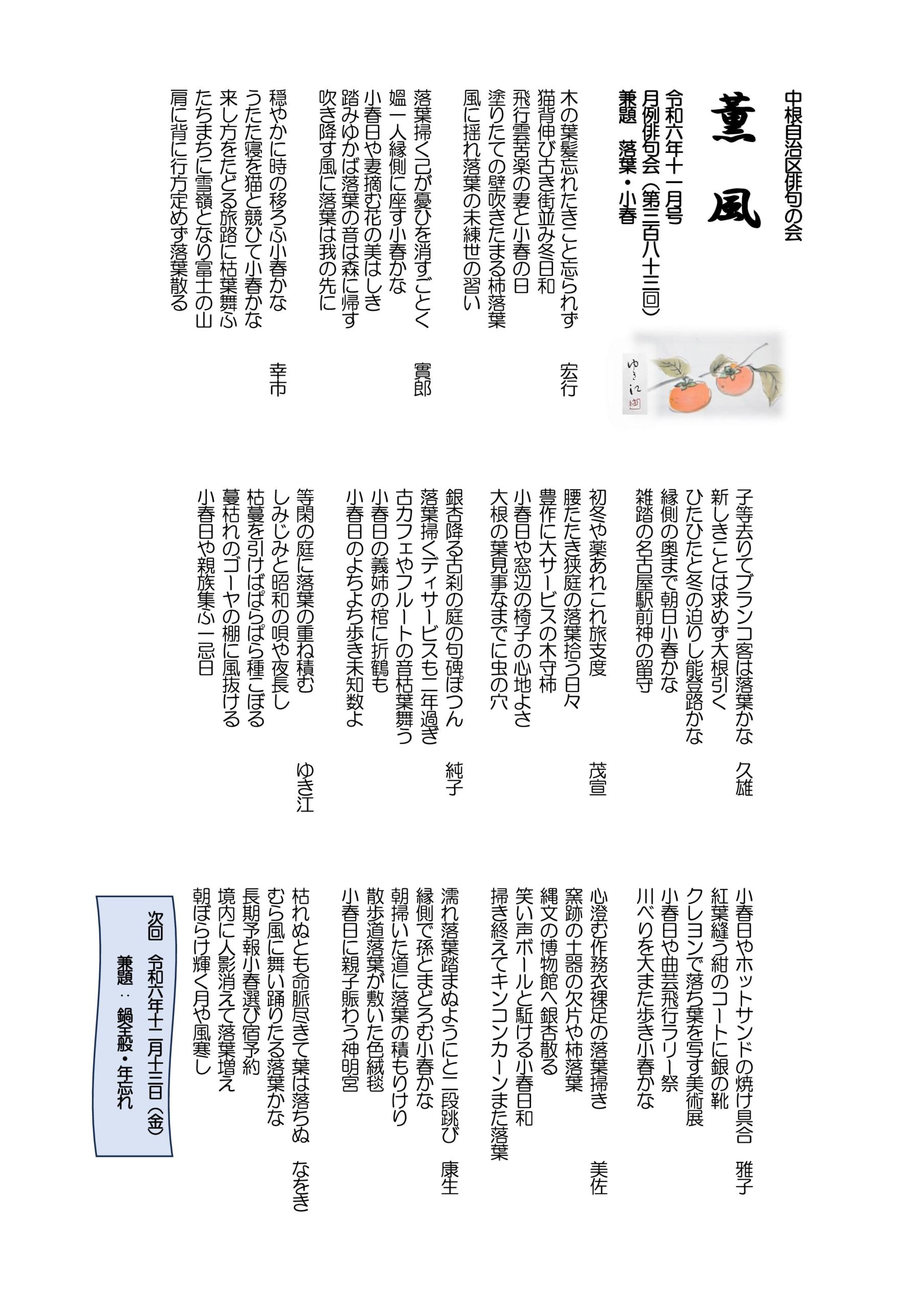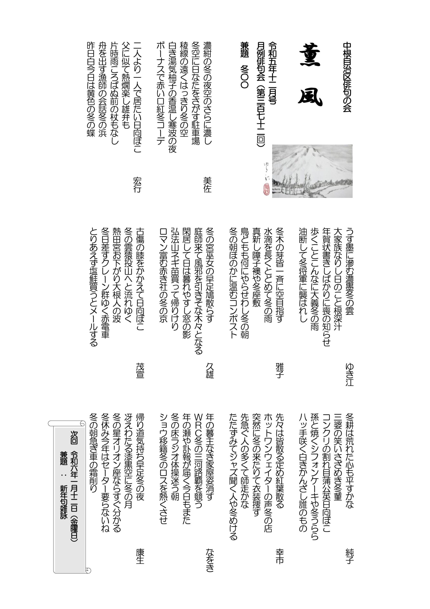- 薫風 令和5年12月号 月例俳句会372号