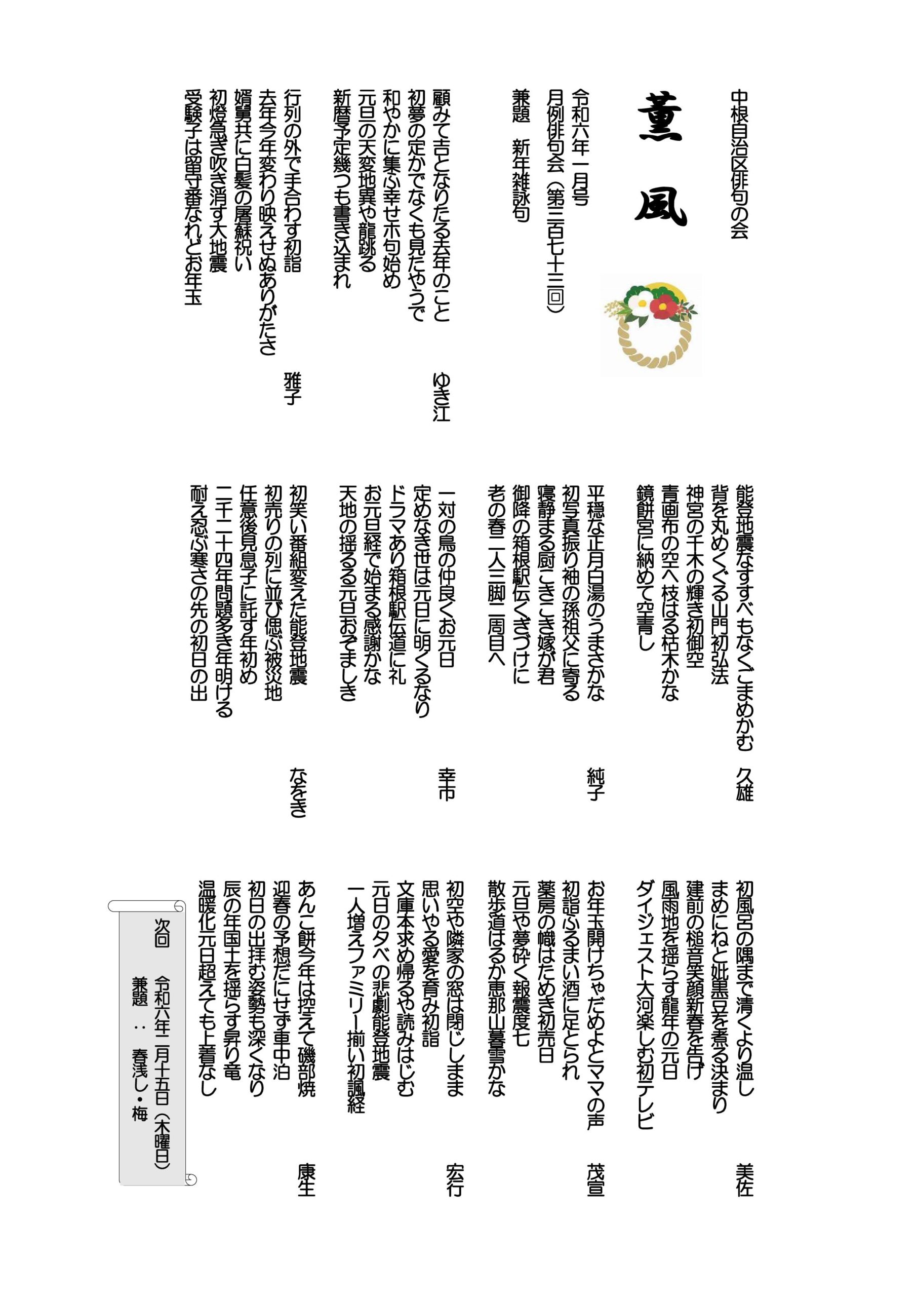- 薫風 令和6年01月号 月例俳句会373号