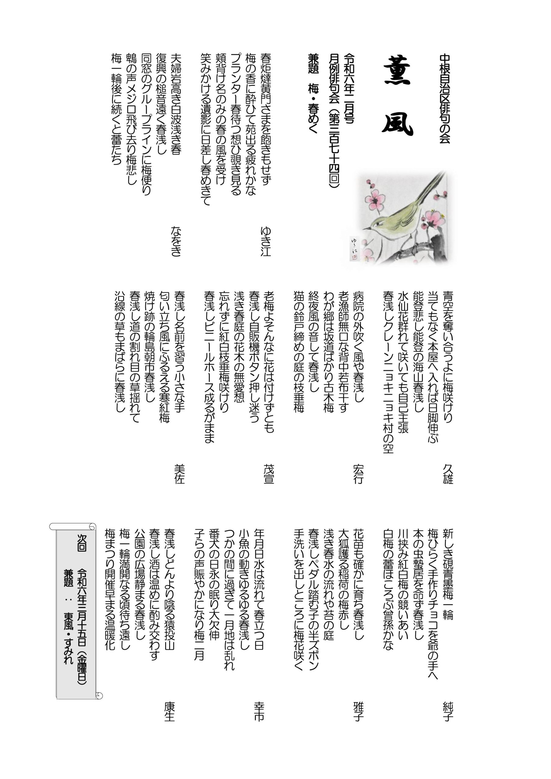 - 薫風 令和6年02月号 月例俳句会374号