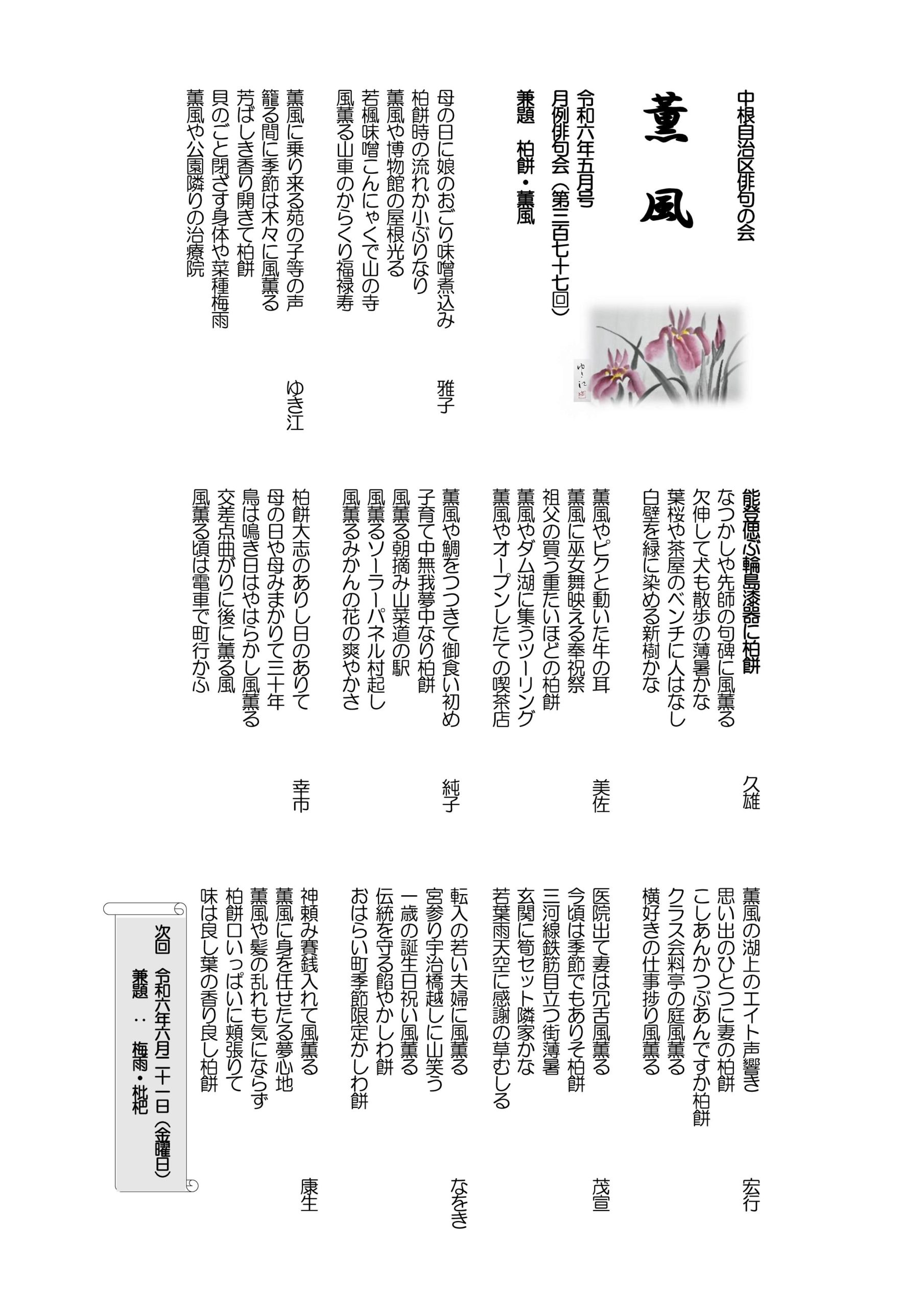 - 薫風 令和6年05月号 月例俳句会377号