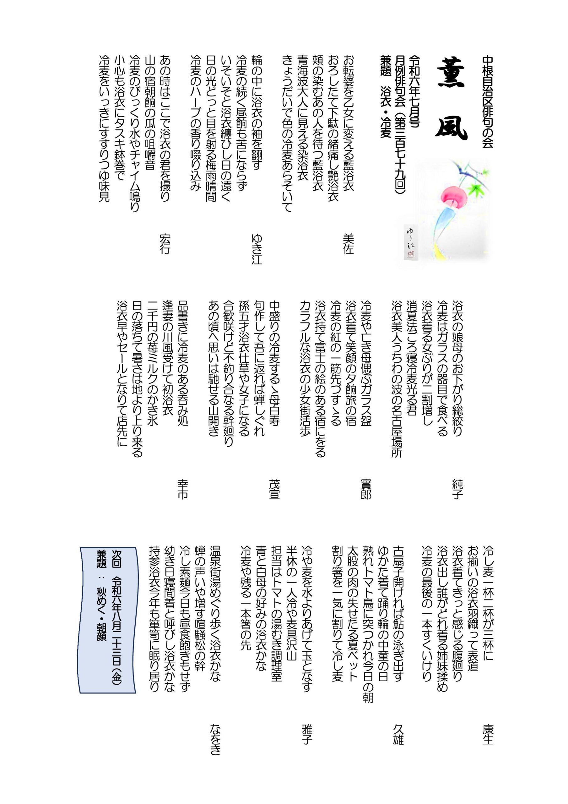 - 薫風 令和6年07月号 月例俳句会379号