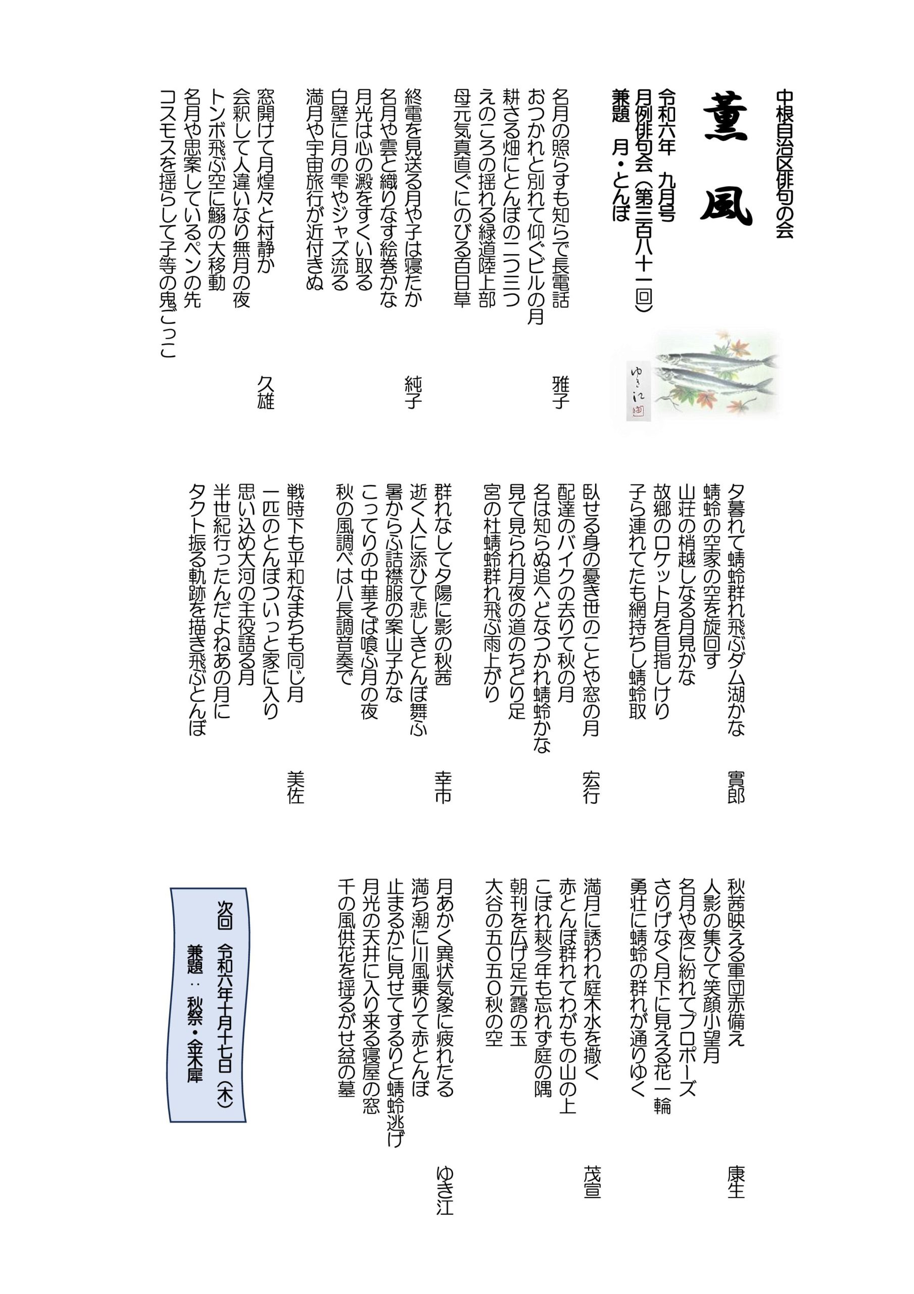 薫風 令和6年09月号 月例俳句会381号