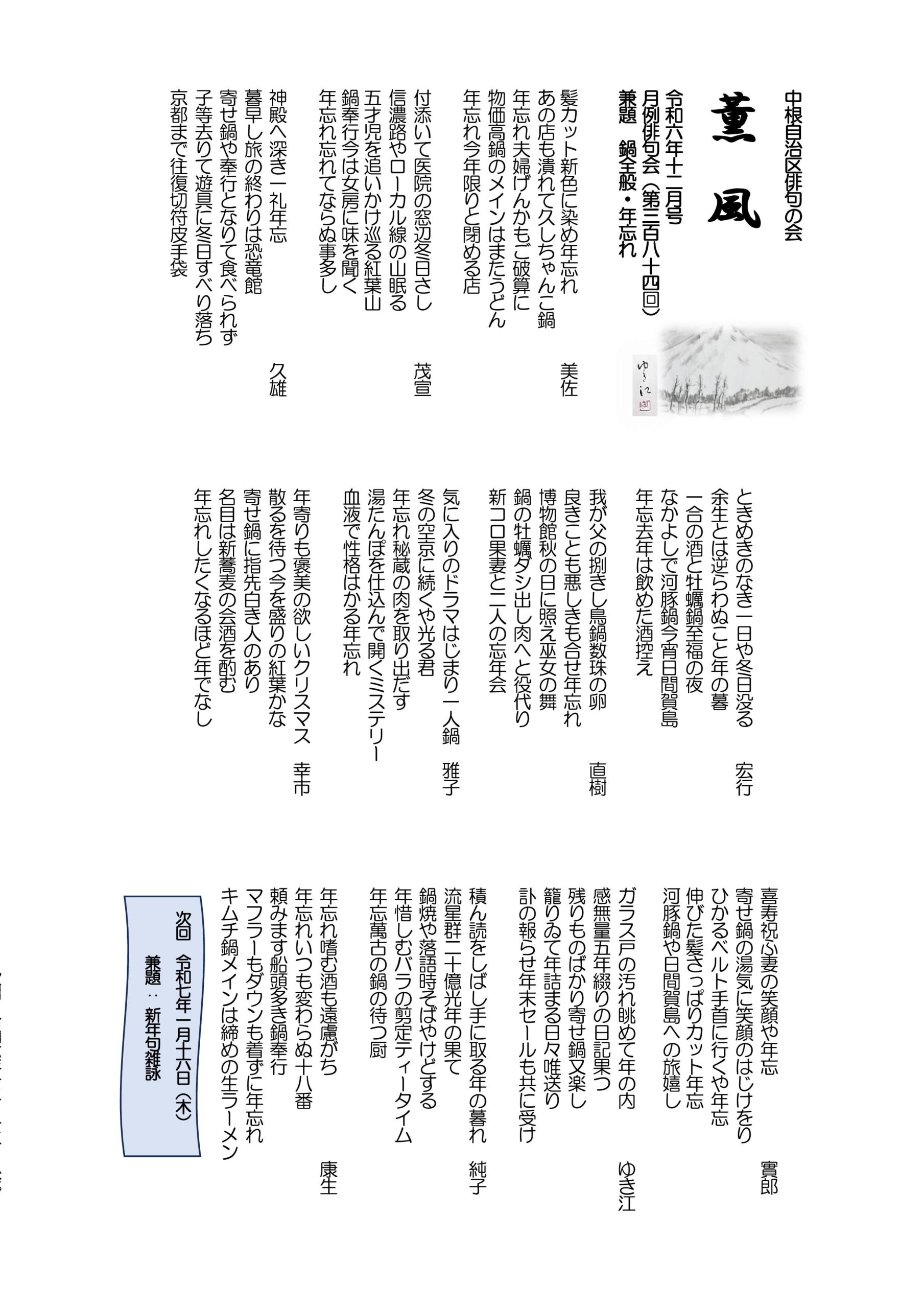 - 薫風 令和6年12月号 月例俳句会384号