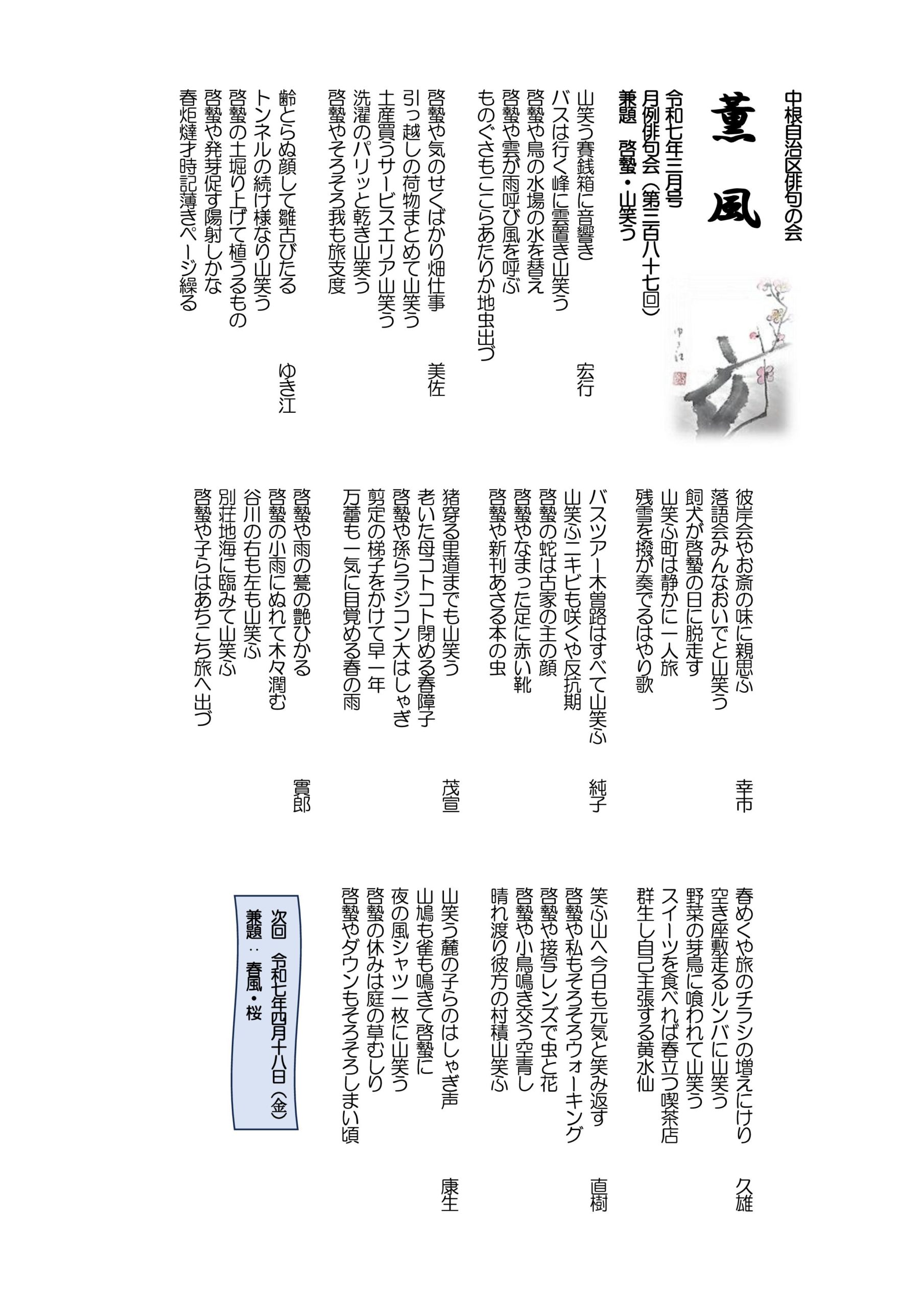 - 薫風 令和7年03月号 月例俳句会387号