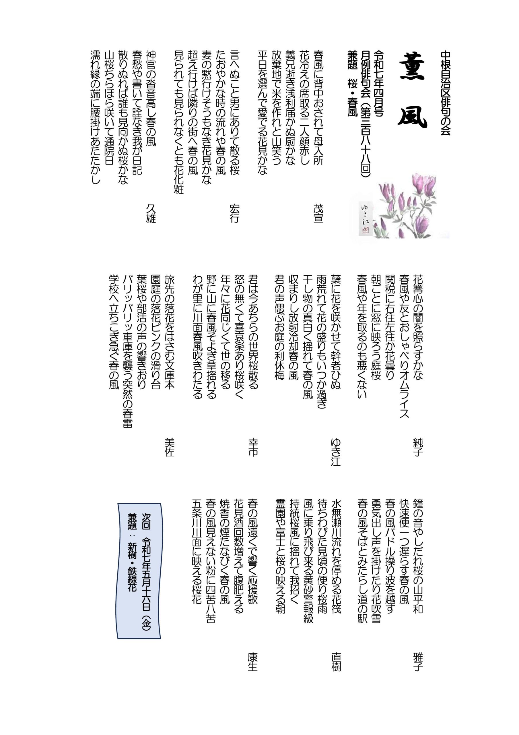 - 薫風 令和7年04月号 月例俳句会388号