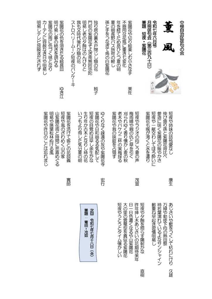 - 薫風 令和7年07月号 月例俳句会391号