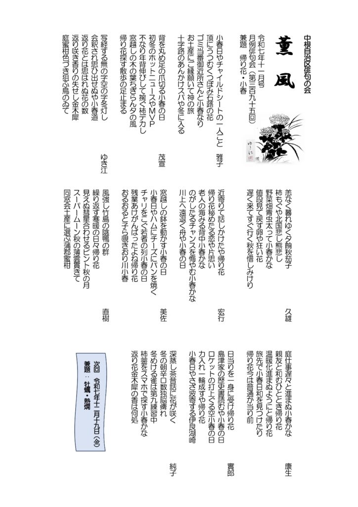 薫風 令和7年11月号月例俳句会395号
