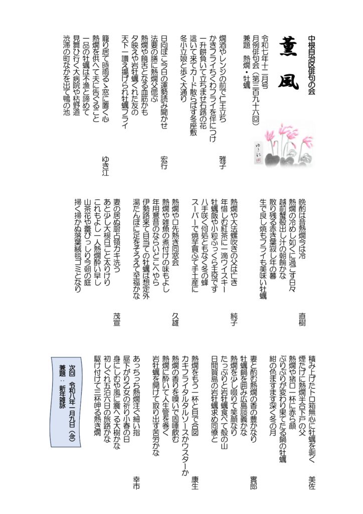 薫風 令和7年12月号月例俳句会396号
