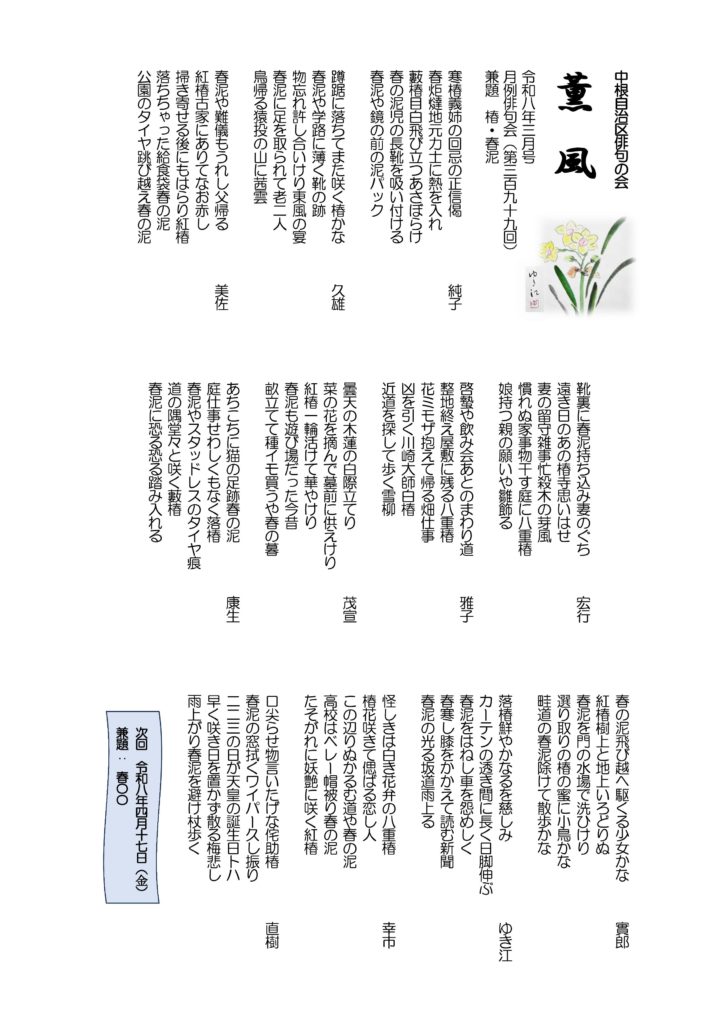薫風 令和8年 3月号月例俳句会399号